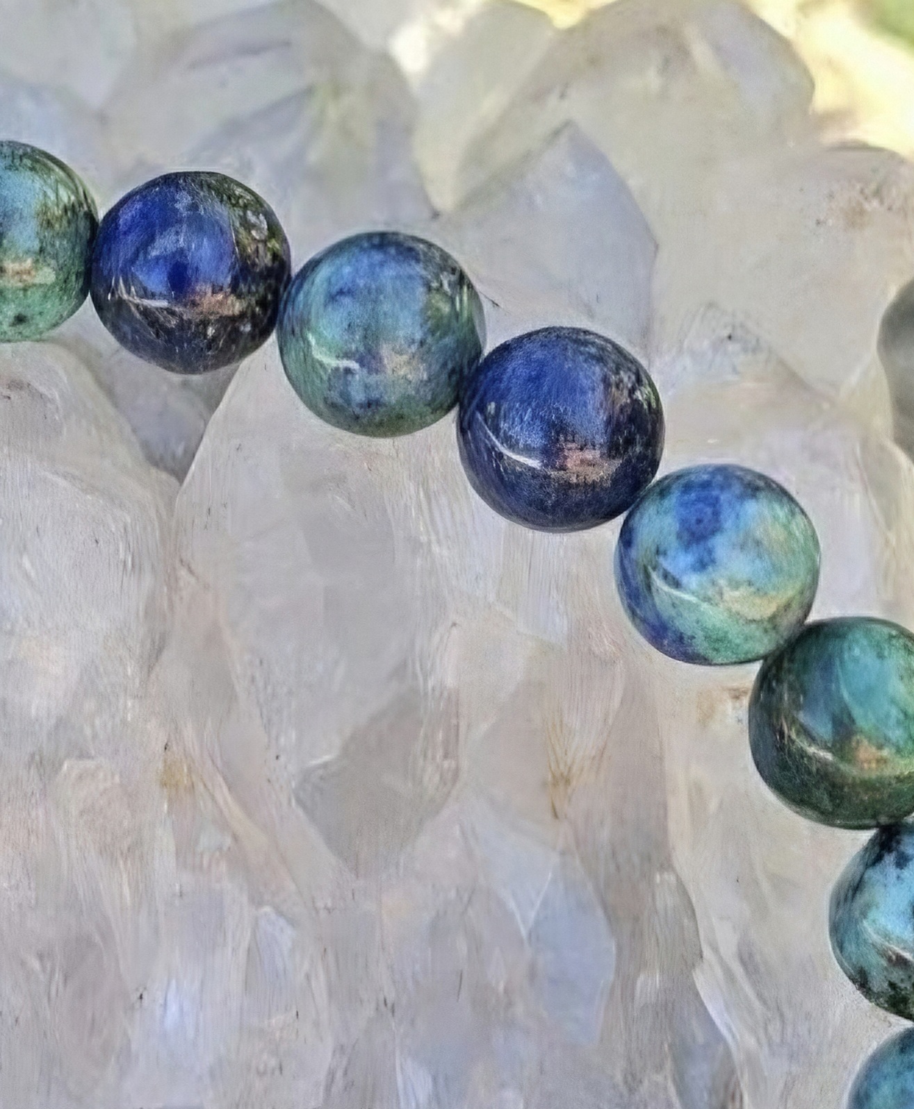 Chakra: Les chakras reliés à l’azurite malachite sont les chakras de la gorge et du cœur.