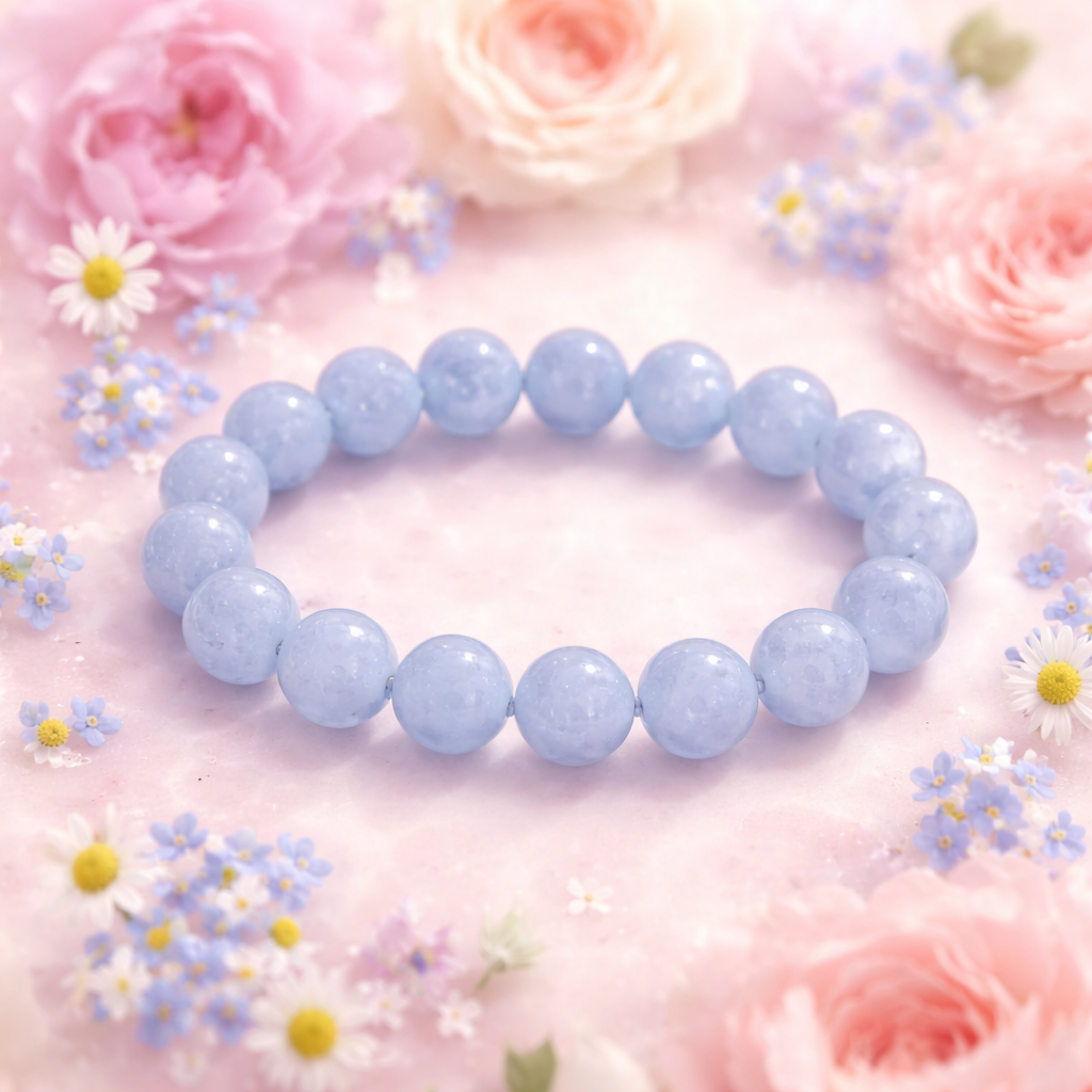 Chakra: Le port d’une calcédoine bleue agit sur le chakra de la gorge. Il facilite la communication de qualité. Il permet aux personnes trop timides de pouvoir s’exprimer clairement en public et d’avoir une éloquence de qualité. Elle aide parfois à l’acquisition du langage chez les très jeunes enfants.