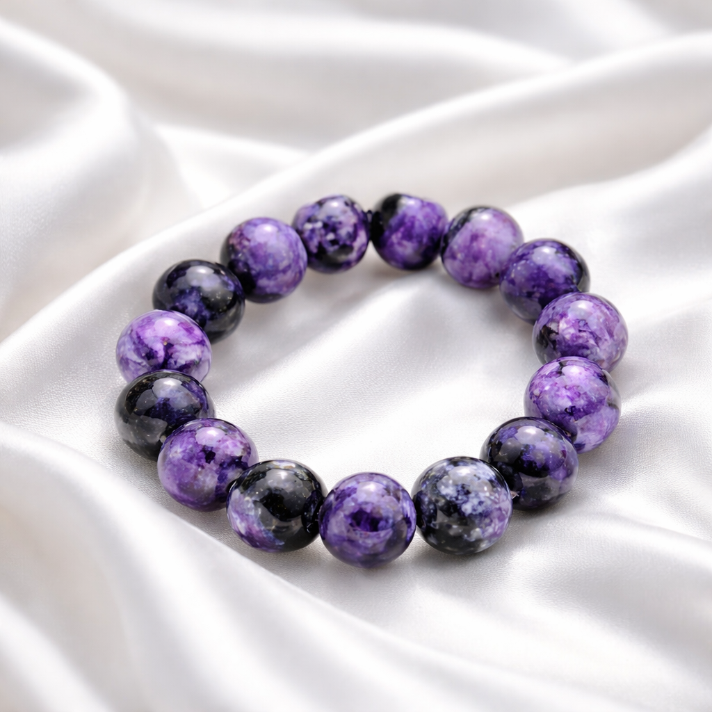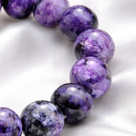 Chakra: La charoïte est reliée au chakra couronne, situé au-dessus du crâne. Ce chakra est associé aux émotions psychiques et améliore l’optimisme et l’empathie.