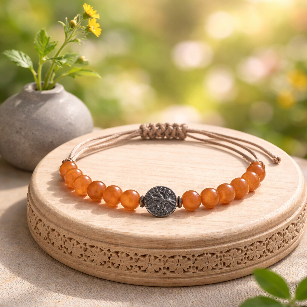 La pierre naturelle qui le compose est reconnue pour refléter la joie, la réussite, le bonheur, l’abondance et la paix. Chaque pierre étant unique, votre bracelet l’est aussi.