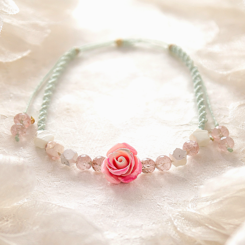 Laissez parler votre cœur avec ce bracelet d’amour au délicat bouton de rose, une création originale et entièrement faite main, symbole d’élégance et de douceur.