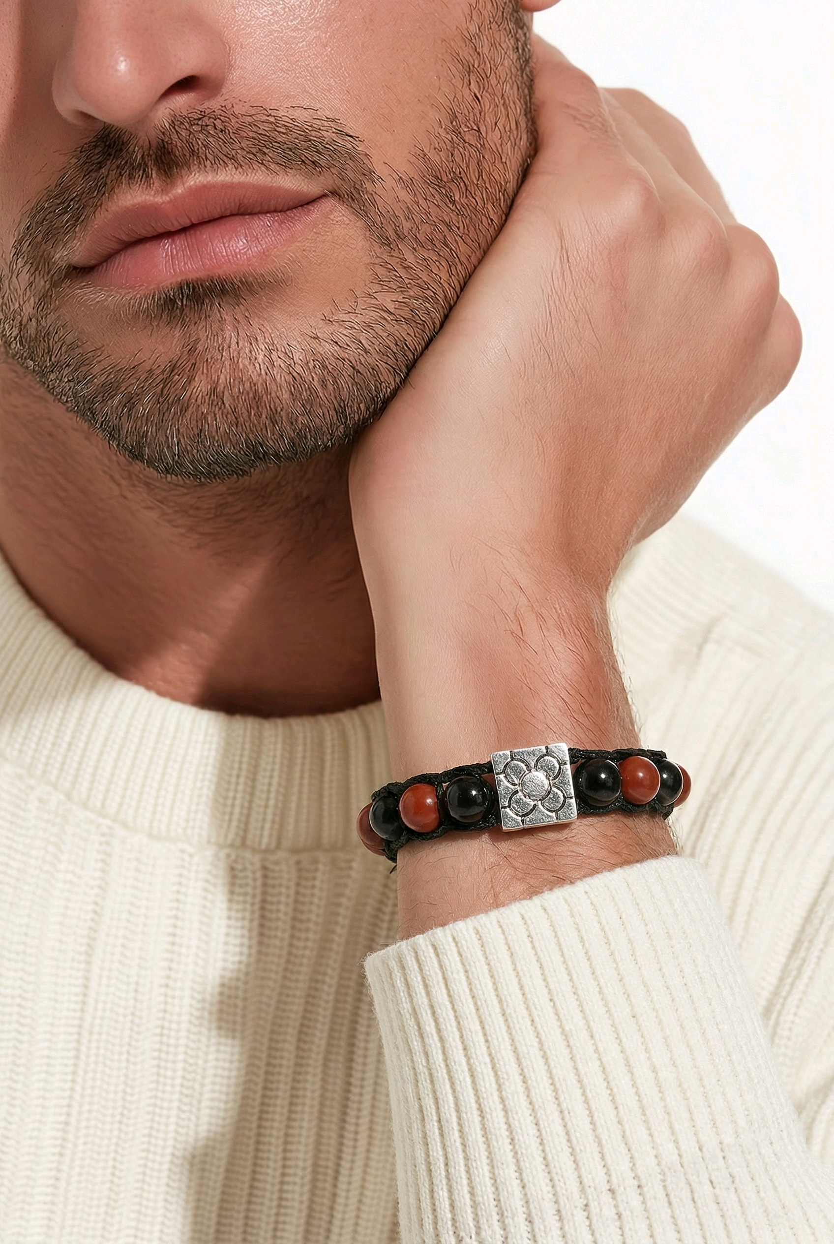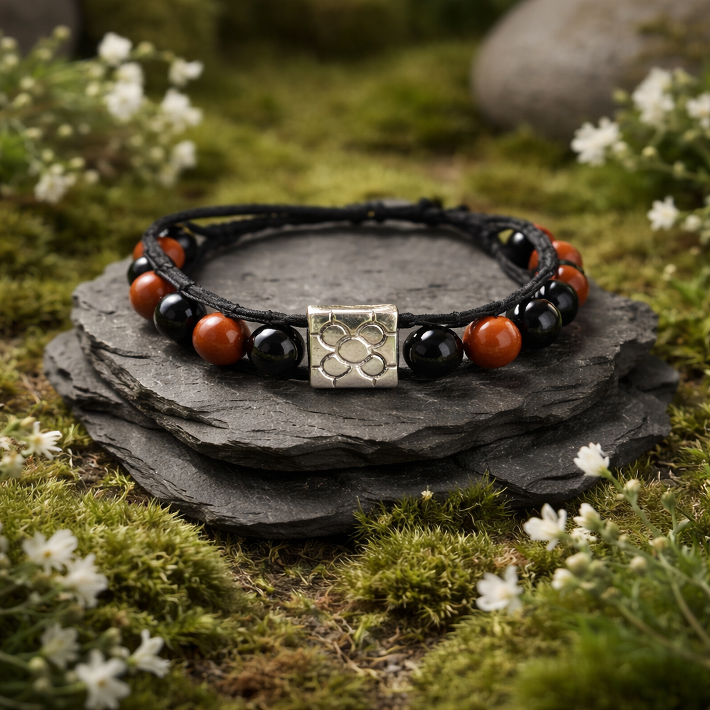 La tourmaline noire est réputée pour éloigner les énergies négatives et protéger son porteur, tandis que le jaspe rouge apporte vitalité, stabilité et force intérieure. Ensemble, ces pierres favorisent un meilleur équilibre émotionnel et aident à aborder chaque journée avec sérénité et confiance.