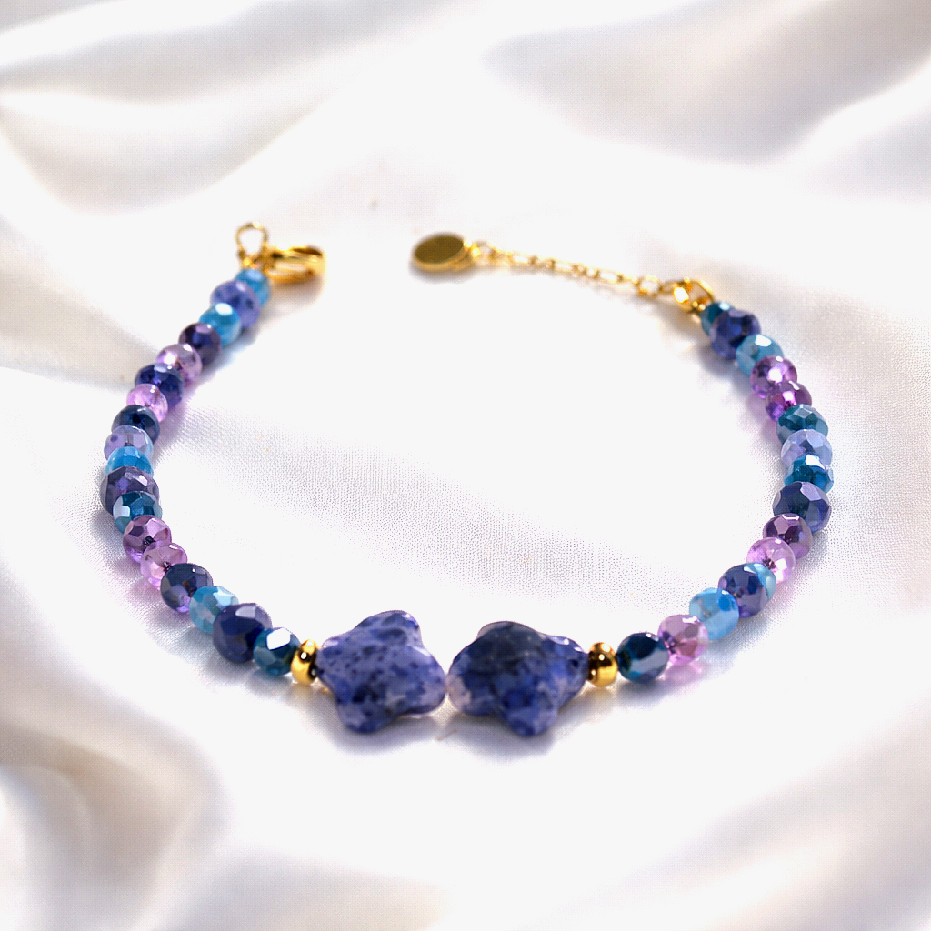 Ce bijou fait main, composé de pierres naturelles, révèle un délicat reflet de douceur.