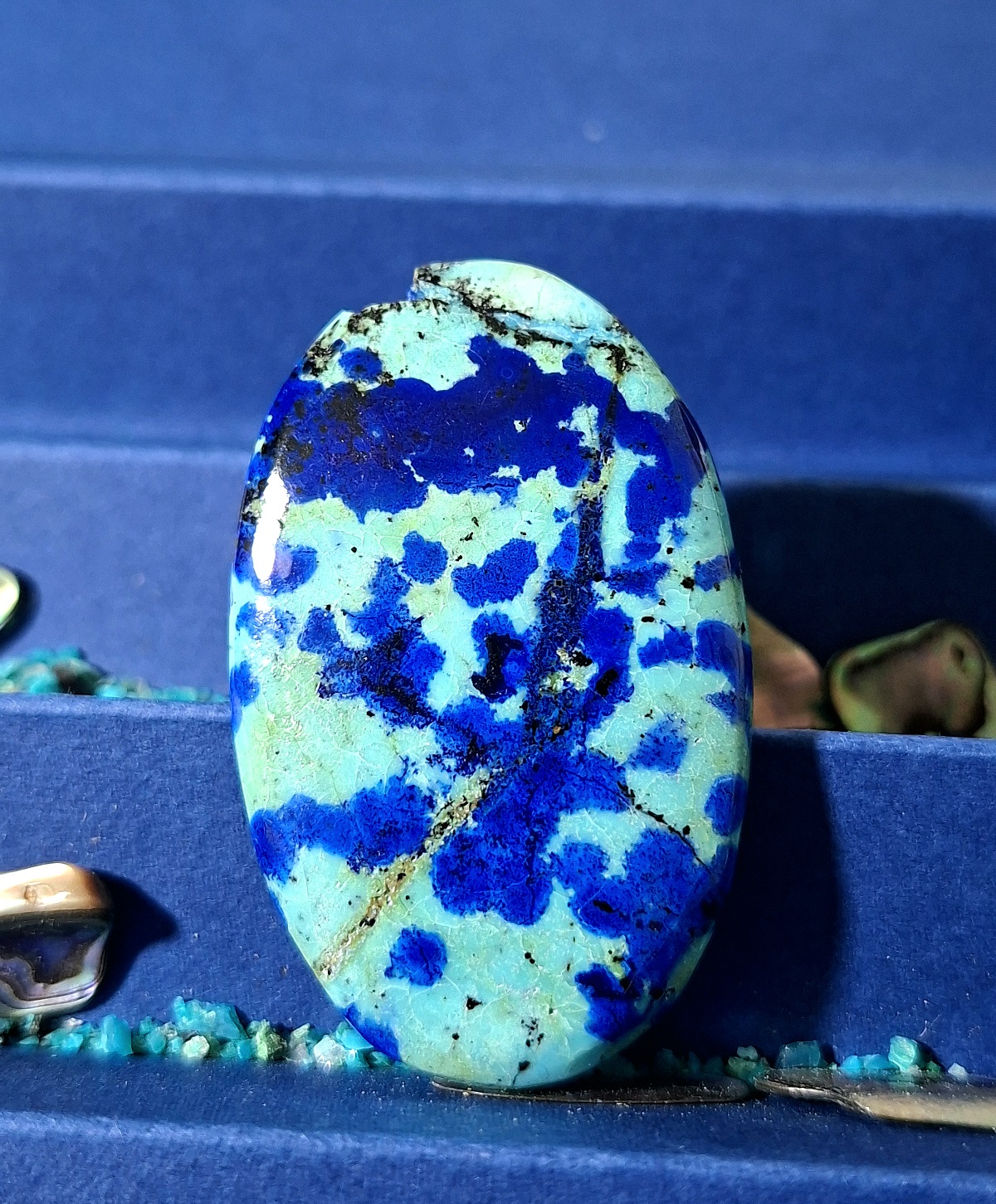 L’azurite chrysocolle est une pierre associée à la transformation et à l’harmonie. Elle est souvent utilisée pour favoriser une perception plus positive du quotidien et pour inciter à mieux comprendre ses émotions. Elle encourage à profiter du moment présent, à prendre du recul et à développer un état d’esprit plus ancré et détendu.