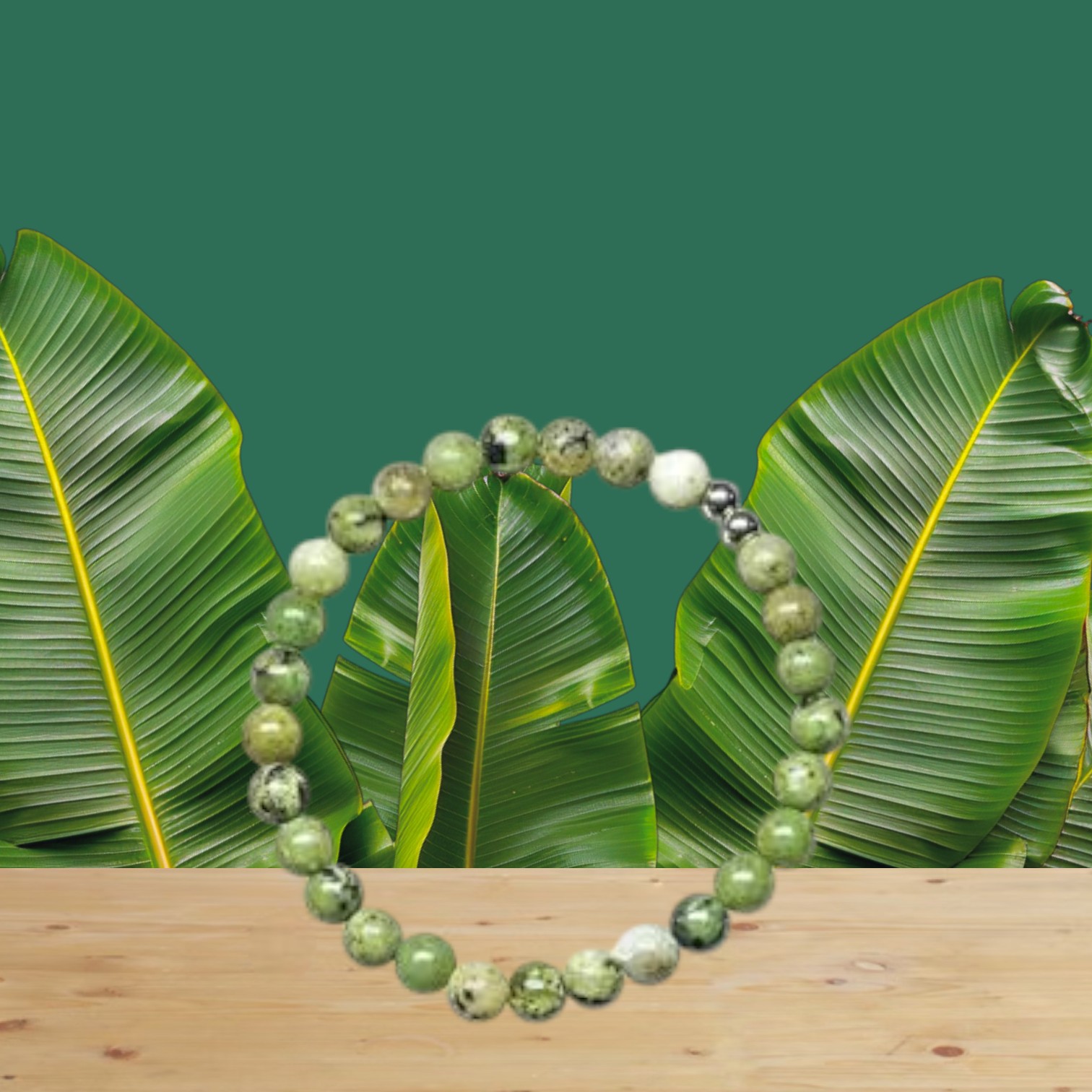 Purification: passer le bracelet sous l’eau puis le positionner sur une améthyste ou un cristal de roche.