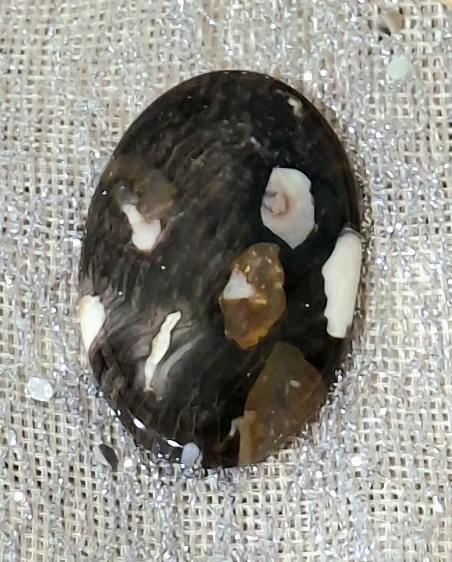 Peanut Wood (bois cacahuète) est un bois pétrifié (fossile) qui s’est fossilisé dans l’eau de mer. Ce drôle de nom lui a été donné à cause de multiples zones blanches, dont il est parsemé et qui ressemblent à des cacahuètes. Ces tâches sont des galeries dues à un petit mollusque qui a creusé le bois avant sa fossilisation. Ce bois fossile très rare nous vient exclusivement de la côte ouest de l’Australie, du fin fond du crétacé (plus ou moins 70 millions d’années quand même).